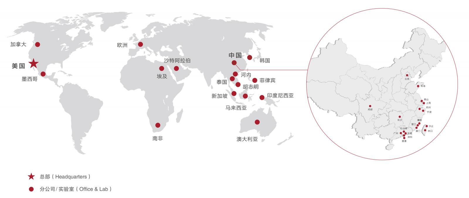 BACL全球拥有员工2000多人,在美国,加拿大,欧洲,韩国,拉美,中东,非洲,中国台湾等四十多个国家和地区拥有实验室和服务网点,可以为您出海提供有力的支持。