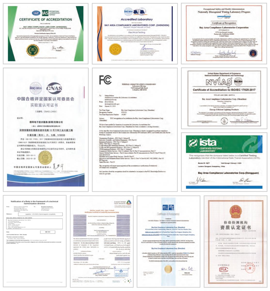 • 美国FCC认证机构,加拿大ISED认证机构;