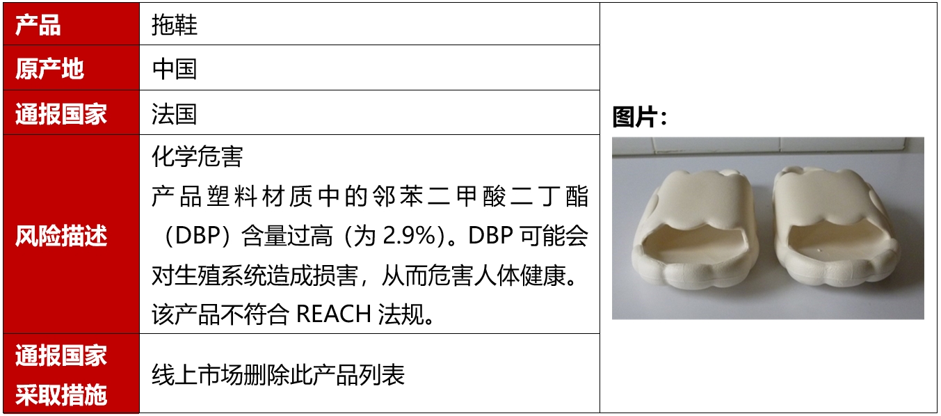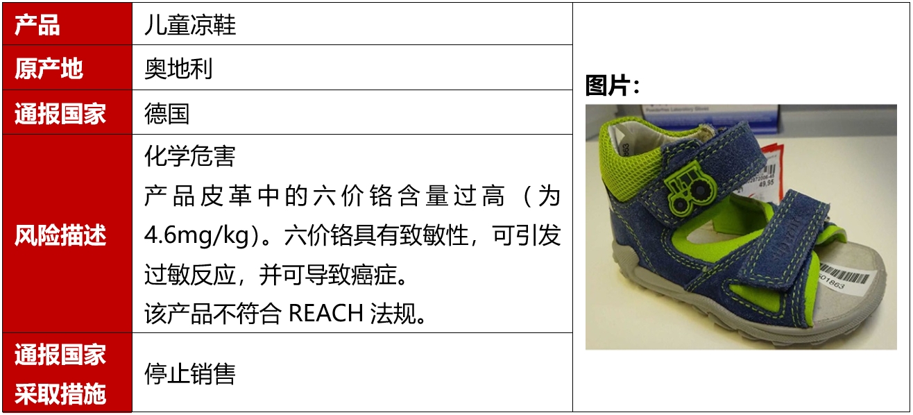 2024年7月,欧盟、美国、加拿大和澳洲共发生5例鞋类召回案例。这些召回发生在欧盟,分别是因为存在窒息或化学危害被召回的。