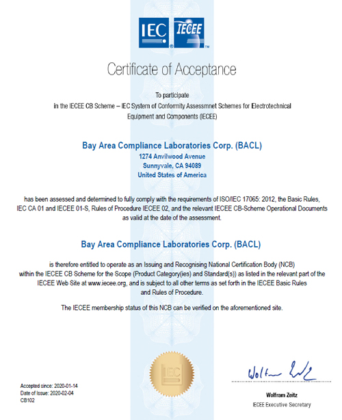 倍科 (简称“BACL”),成立于1996年,总部位于美国硅谷,是一家集检测、认证、检验、计量、鉴定、咨询、工厂审核、软件开发、设备制造等为一体的综合性第三方检测认证服务机构。多年来,BACL始终以“专业、权威、精准、高效”的服务理念,以一站式解决方案享誉全球,创造了行业的奇迹。