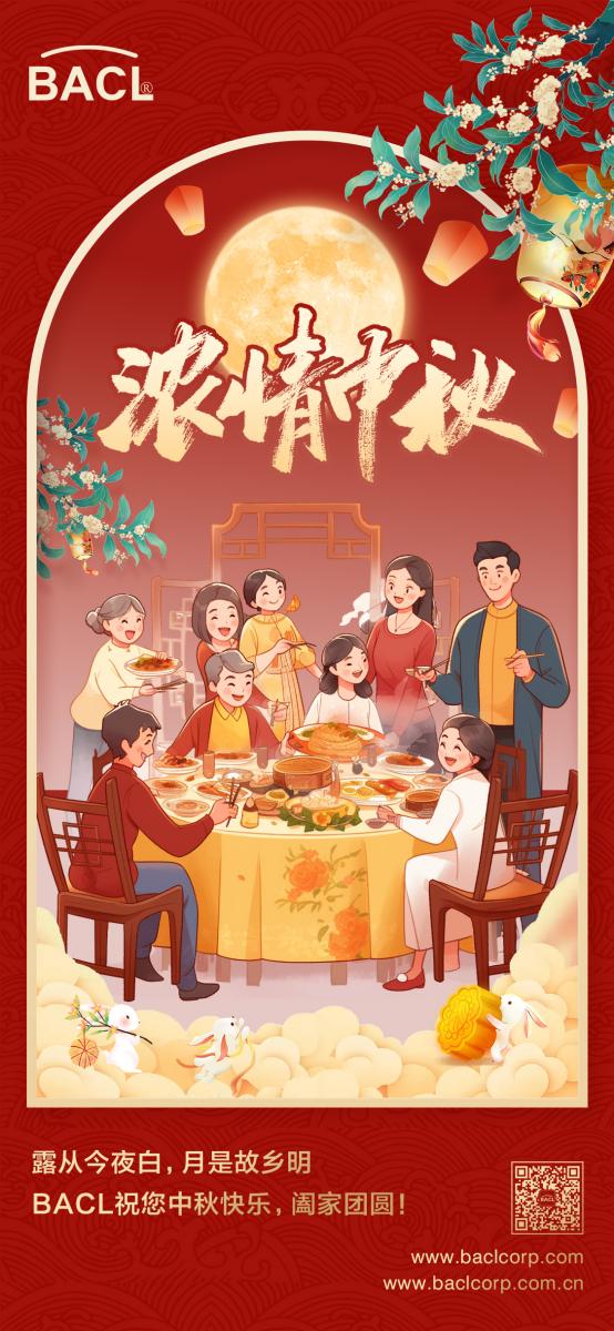 [导读]: 皓月当空悬,皎皎照神州; 万家灯火明,共赏此轮秋。 又逢中秋月圆夜, 家人亲友共团圆。 这一年, 感谢您与BACL的真诚相伴。 值此花好月圆之际, BACL祝您中秋快乐,阖家团圆...