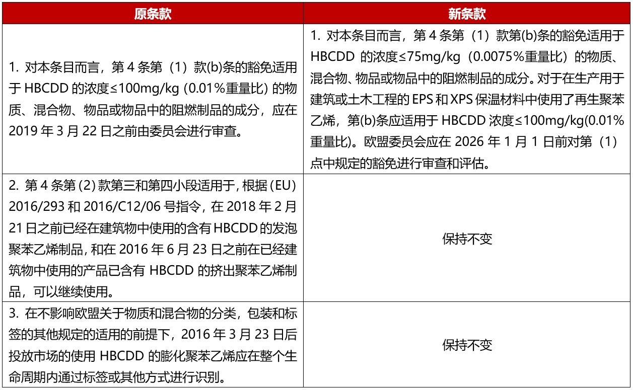 2024年9月27日,欧盟委员会在其官方公报上分别发布了欧盟POPs法规(EU) 2019/1021的修订法规(EU) 2024/2555,将六溴环十二烷(HBCDD)无意微量污染物(UTC)限值从100mg/kg降低至75mg/kg。该条例将于官方公报发布后的第20天起生效,也就是2024年10月17日起生效。