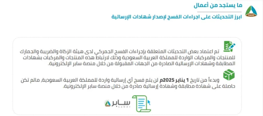 [导读]: 近日,在沙特举办的第十一届年会上,沙特标准组织(SASO)针对货物清关发出了重要通知: 沙特更新清关流程,主要与将进口货物关联到saber平台获得的PCOC和SCOC证书上相关。 自2025年1月1日...