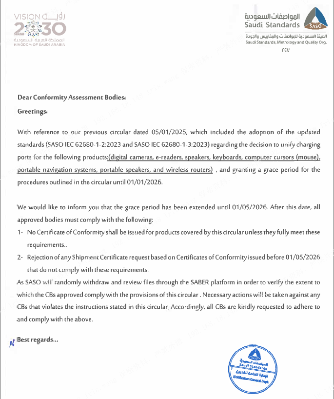 重要:关于SASO IEC 62680的最新通知!